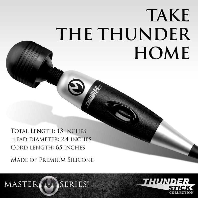 Same incredible power as the original, now with a silicone head and a sleek, modern makeover! The Thunderstick is the perfect vibrating massage wand, providing you with a smooth, variable speed dial that allows you to play with intensities that range from a delicate, low hum to a knee-shaking thrum. The flexible neck allows you to find the right angle without straining your wrist. Whether you are playing solo, with a partner, or even enjoying forced orgasm or orgasm denial play, the textured body ensures a secure grip. Just plug it in and experience the most powerful vibration in its class! This new version of the Thunderstick is easier than ever to clean, made with non-porous and phthalate-free silicone. To preserve the material, do not use with silicone lubricants.
