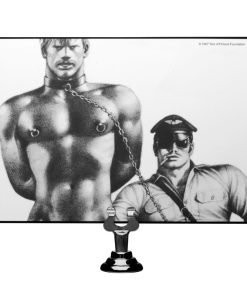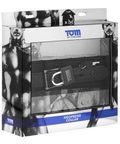 This sturdy Neoprene collar offers comfortable restriction with classic style. Double layered for strength, it features a metal plate that spells out Tom of Finland on the side. There is a D-ring attached to the front, just waiting for the matching leash, sold separately. Fully adjustable, the band is topped by a locking buckle, with a Tom of Finland padlock and keys included for immediate use. Matching wrist and ankle cuffs available separately.
