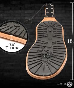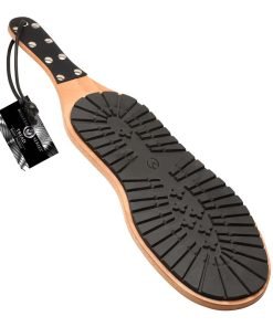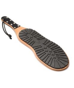 Introducing the Tread Boot Paddle – an exceptional addition to your kink play. With its dual-sided functionality, choose between leaving a striking boot mark or using the smooth wood side for varied sensations. The paddle’s handle is encased in supple vegan leather, offering a comfortable grip during intense sessions, reinforced by nickel-free tacks for a secure hold. Additionally, a practical loop allows for easy hanging and storage, keeping your play space organized. Elevate your BDSM experience and leave your mark on your submissive partner's behind!