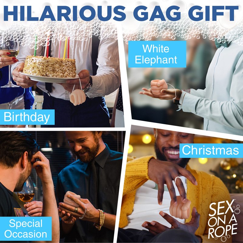 For friends with dirty minds, the best way to get clean is with a naughty gag gift of Tug 'n Scrub soap! This peach colored soap hangs on a nylon rope so you can keep it from losing its shape between uses (as some soaps do when placed in a soap dish). This soap is shaped like a firmly gripped hand with a hollow tube in the center. It's the perfect place to insert any cylinder-shaped objects and scrub them really clean with a few tugs and strokes! This soap is lightly scented and moisturizes the skin with each use. Sneak this into a gift basket today!