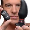 Shove a missile up your butt and wait for the explosion! Expand your pleasure with this inflatable and vibrating anal toy unlike any other. This silky-smooth silicone plug will gently swell within you for an unbelievable sensation of fullness. Treat yourself or your partner to 7 modes of vibration, including 3 speeds and 4 patterns. The remote control does it all, sending buzzes into you booty, as well as allowing you to find the perfect inflation point. Just hold down the button on the left to begin the ballooning, or press it more carefully for a slow, gradual growth. The button on the right will instantly deflate it back to its original size for a comfortable removal.